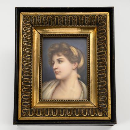 HENNING, Adolf (1809 Berlin - 1900 ibid.). Portrait of a woman in an ajour carved magnificent frame.