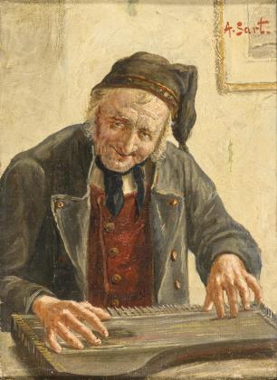 GENRE PAINTER 19TH CENTURY. Musicians in front of a Tyrolean inn.