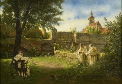 LINDERUM, Richard (1851 Dresden - 1926 Munich). Monks in the monastery garden.