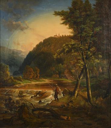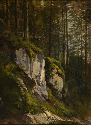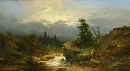 FRITSCH, Melchior (1826 Vienna - 1889 ibid.). Forest landscape with hunter.