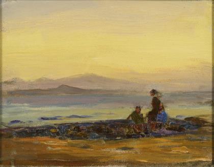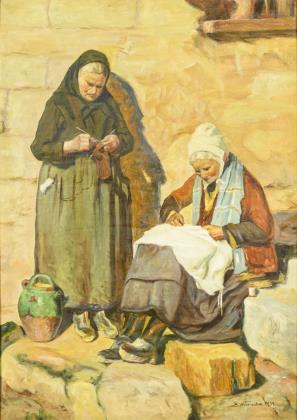 RICARD-CORDINGLEY, Georges (1873 Lyon - 1939). The artist's wife and daughter near Cannes.