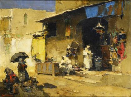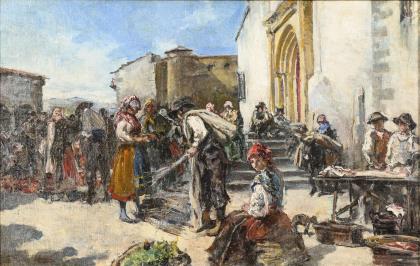 MUÑOZ LUCENA, Tomas (1860 Cordoba - 1943 Madrid). Market in Avila.