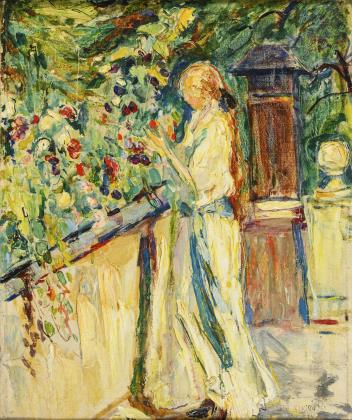 ORLOWSKY, Kate (1889 Kronstadt/Upper Silesia - after 1930). Young woman at the flower bed.