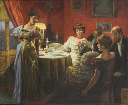 FRANK-KRAUSS, Robert (1893 Fürth - 1950 Munich). Wine drinker in conversation.