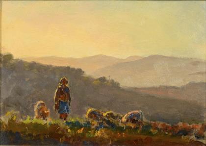 SINDING, Knud (1875 Århus - 1946 Copenhagen). Reaper on the heath.