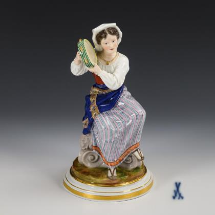 Italian woman with tambourine. Meissen.