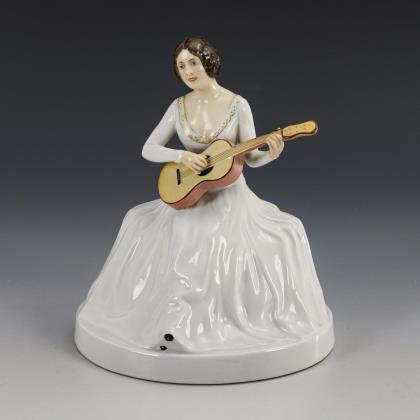 Rare Art Nouveau figurine: Italian woman with tambourine. Meissen.