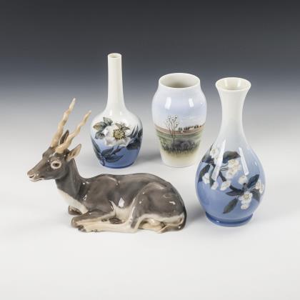 3 vases and 1 antelope.