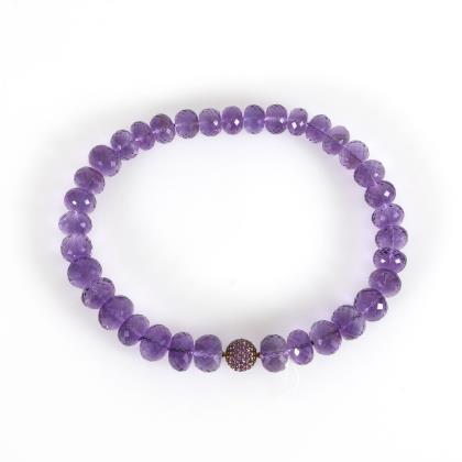 Necklace with amethyst facetted beads and gold clasp.