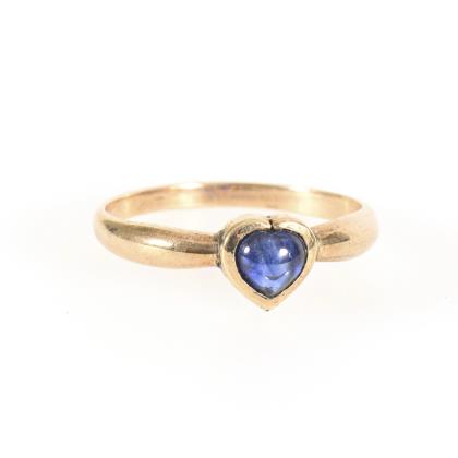 Ring with heart-shaped blue colored stone.