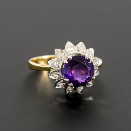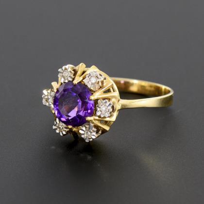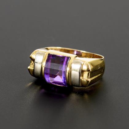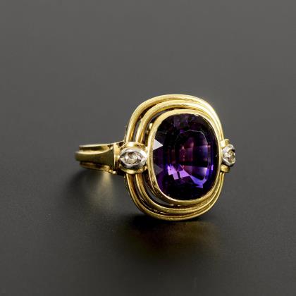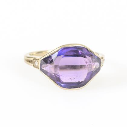 Ring with amethyst and octagonal diamonds.