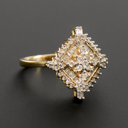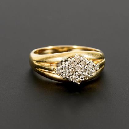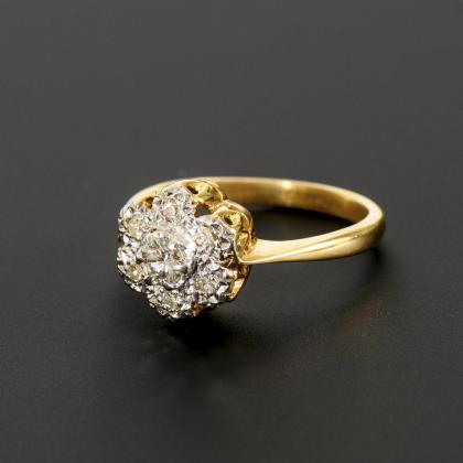 Ring with round brilliant-cut diamond cluster.