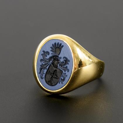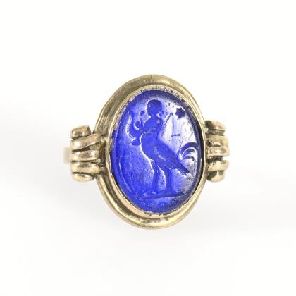Ring with intaglio in blue glass.