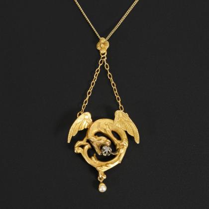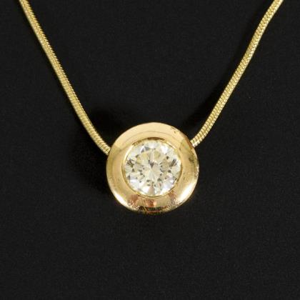 Pendant with large brilliant-cut diamond solitaire, on chain.