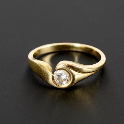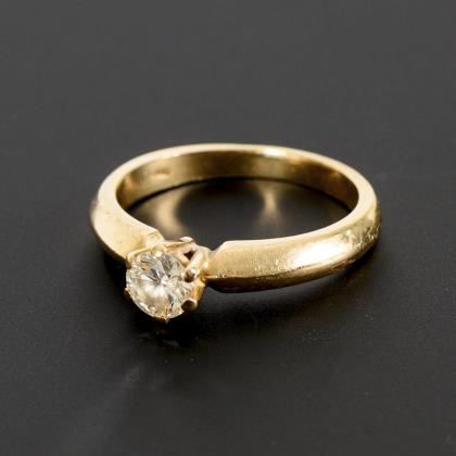 Ring with brilliant-cut diamond solitaire.