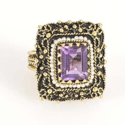 Vintage ring with amethyst and small seed pearls.