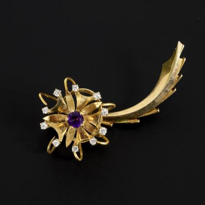 Space age brooch with amethyst and diamonds.