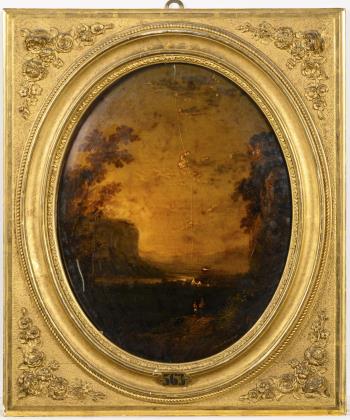 DUPRE, Jules (1811 Nantes - 1889 L'Isle-Adam). Landscape with angler.