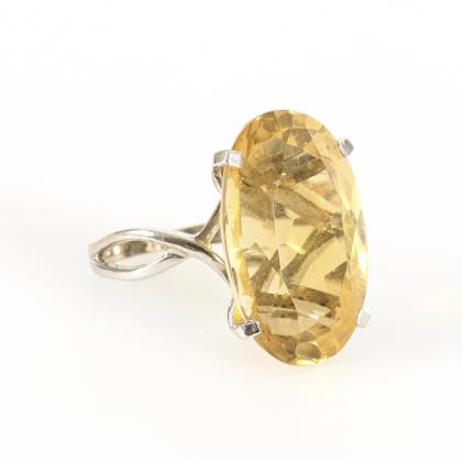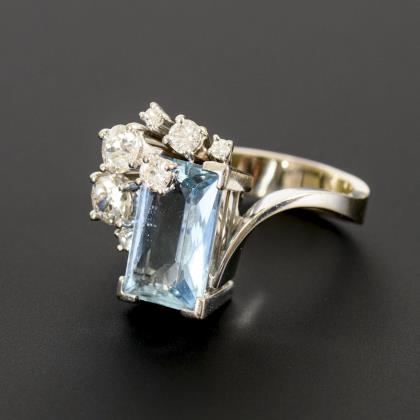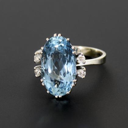 Ring with large aquamarine and 4 brilliant-cut diamonds.