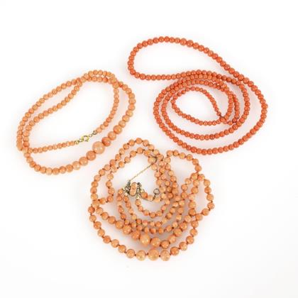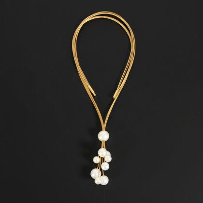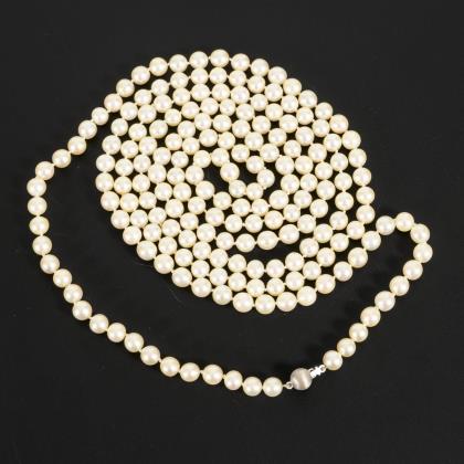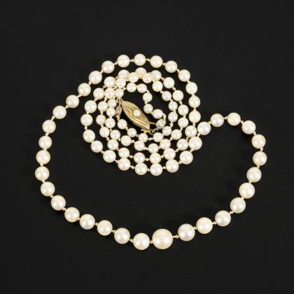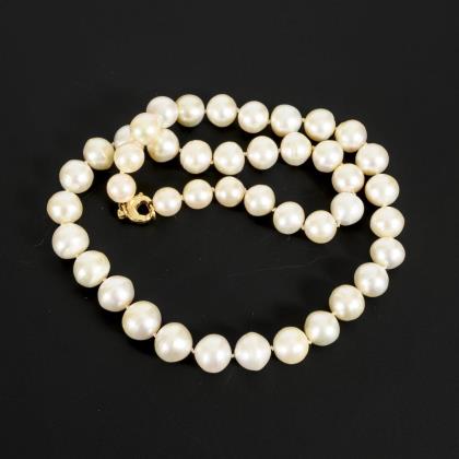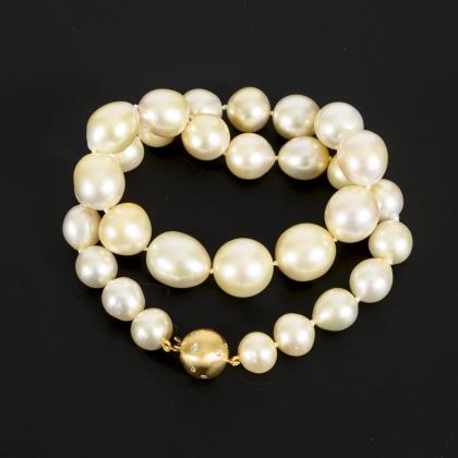 Collier bestehend aus 37 leicht im Verlauf angeordneten Perlen