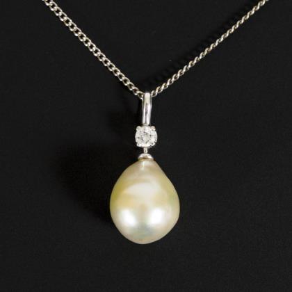 30 Südseeperlen im Verlauf Schließe: 18 kt mit 14 Brillanten