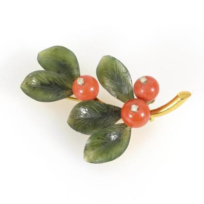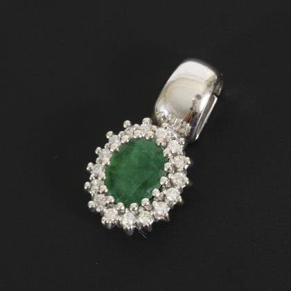 Anhänger in Form eines Trauben Fruchtstands, ausgefasst mit 8 kleinen Perlen und 4 Diamantsplittern