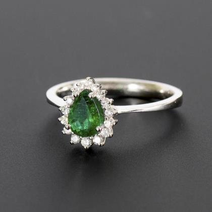Ring with small brilliant-cut diamonds and green-blue colored stones in a pavé setting.