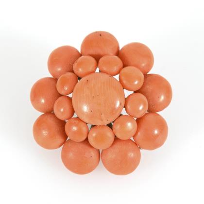 Collier mit rundfacettierten roten Farbsteinen, wohl Rubinen, und kleinen Brillanten. Mittig eine blütenförmige Abhängung, das Kastenschloss mit einfacher Achtersicherung