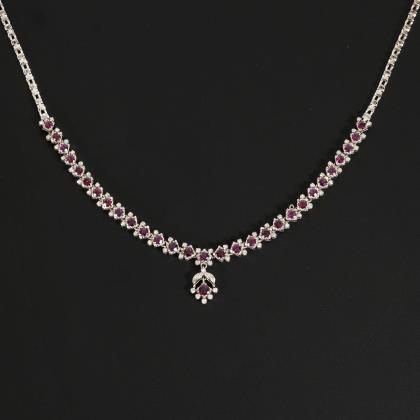 Vintage necklace with red colored stones, probably rubies, and diamonds.