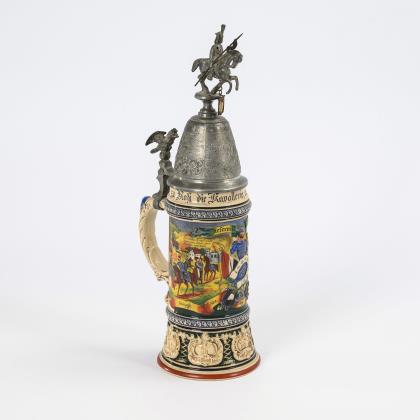 Relief jug with toast and military engraving.