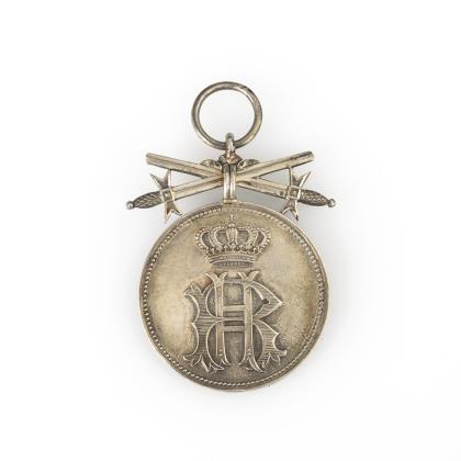 Verdienstorden Fürstentum Reuß. I. Weltkrieg. Silber. Silberne Verdienstmedaille 2. Modell mit Schwertern für militärische Verdienste. Einige Gebrauchsspuren, ohne Band. ..........................