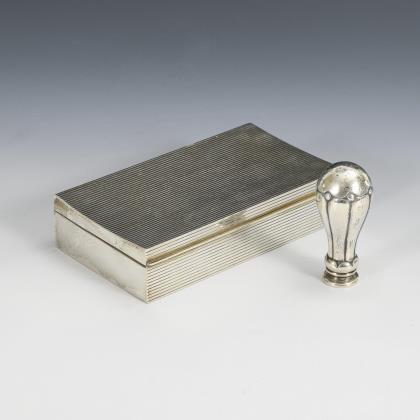 Silver cookie tin with rose finial. Wilhelm Ludwig, Hanau.