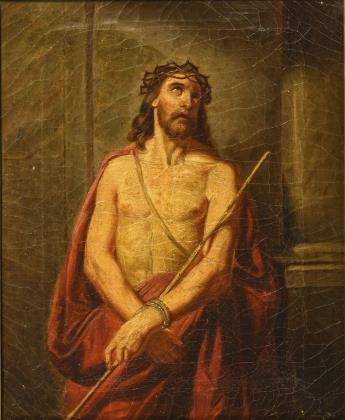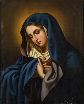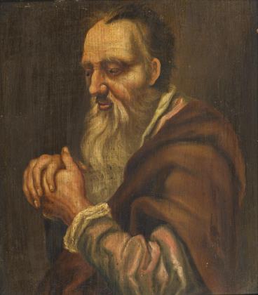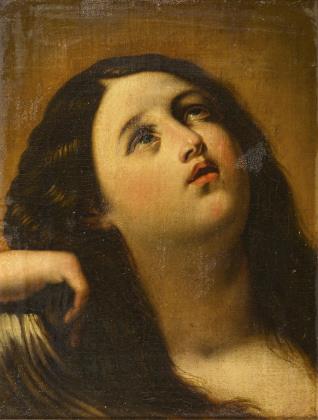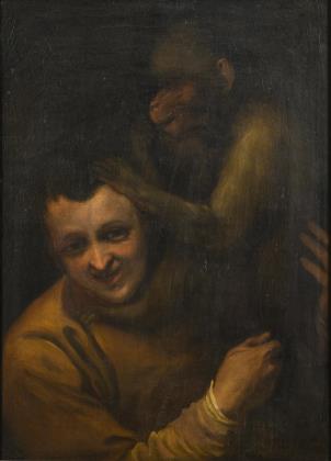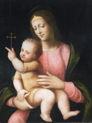Vermutlich eine Arbeit aus der Werkstatt von Bernardino Luini (eigentlich Bernardino Scapi), 1482 Dumenza - 1532 Mailand. Das Gemälde zeugt von einer weichen Manier, mit zaghaften Leonardesken Gesichtern. Rückseitig nummeriert: 1762, ein verwaschener Schriftzug, vermutlich Luini. Stuckrahmen Anfang 19. Jahrhundert