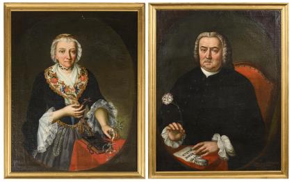 Portrait pendants of the married couple Johann Christian and Polixena Schöttl.