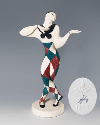 Nijinsky (Waclaw Nischinski), 1889 Kiew - 1950 London, polnischstämmiger russischer Balett-Tänzer und Choreograph. Heller Scherben, farbig bemalt, glasiert. Pressmarken, Malermarke