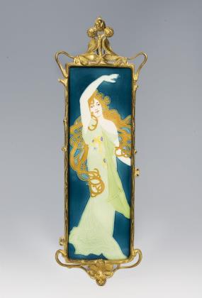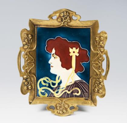 Art Nouveau tile in a gilded metal frame. Johann von Schwarz, Nuremberg.