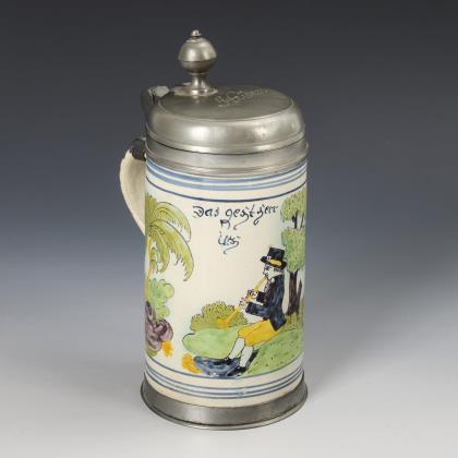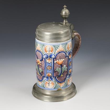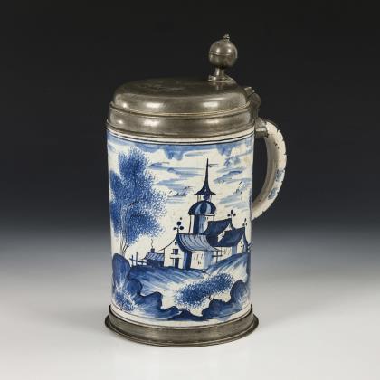 Baroque faience jug with architecture. Berlin or Frankfurt an der Oder.