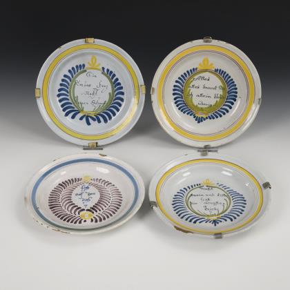 Norica-Fayence, farbige Unterglasurmalerei in Fadenrelief-Technik. Ritzmarke, Malermarke