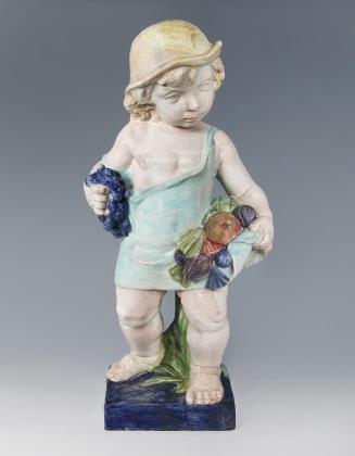Ausführung vermutlich Tonwerke Kandern. Rötlicher Scherben, farbig bemalt und glasiert. Künstler-Signet, ohne Manufakturmarke