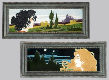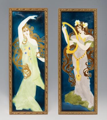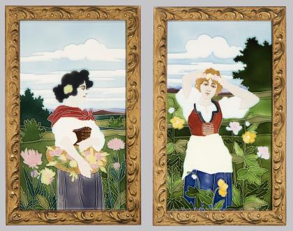 Pendant Art Nouveau tiles in a stucco frame. Johann von Schwarz, Nuremberg.