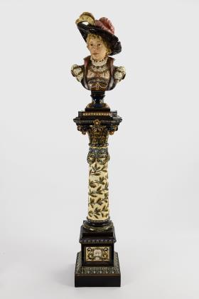 Magnificent Gründerzeit style column with bust of a lady. Rörstrand.