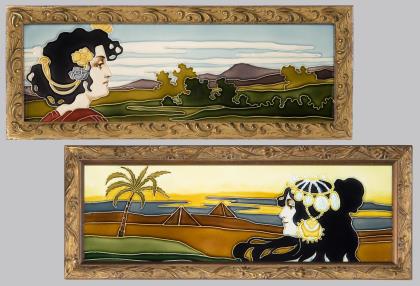 2 Art Nouveau tiles in profile frame. Johann von Schwarz, Nuremberg.
