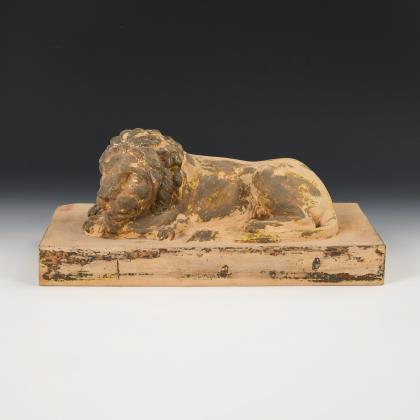 Bemalung in Grün, Gelb und Schwarz. Haubendeckel mit plastisch ausgeformten Löwen als Bekrönung. Pressmarken