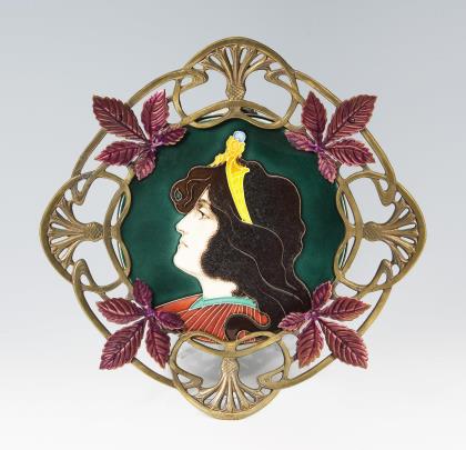 Art Nouveau tile in a metal frame. Johann von Schwarz, Nuremberg.