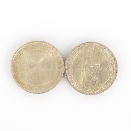 2x 3 Reichsmark Magdeburg and Naumburg, Weimar Republic.