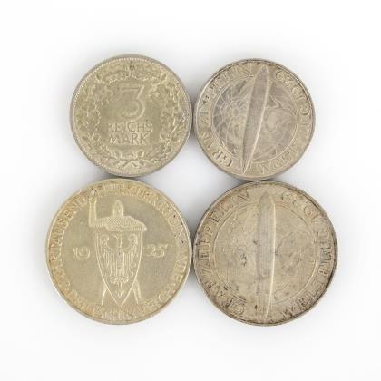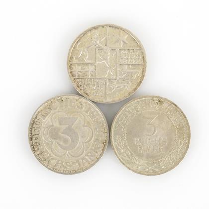 3x 3 Reichsmark commemorative coins, Weimar Republic.