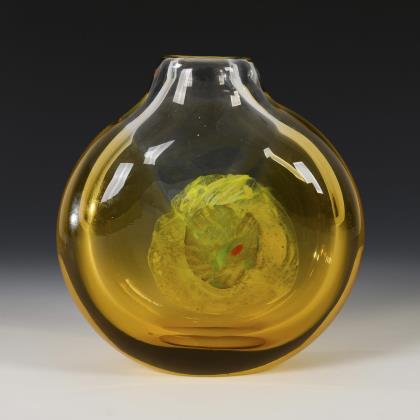 Kunstglasvase mit gelbem Überfang