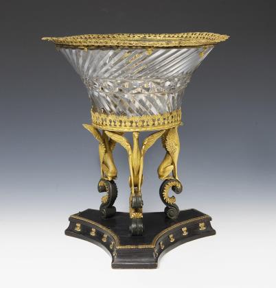 Feuervergoldet und brüniert, Matt- und polierte Glanzvergoldung Mitteltülle mit Tropftellern, die anderen fehlen