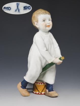 Art Nouveau figurine: Child with stick and drum. Meissen.