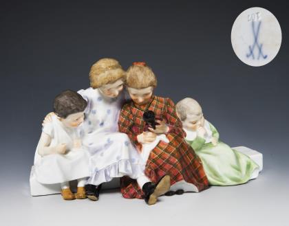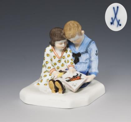 Art Nouveau figurine group: Children with a picture book. Meissen.